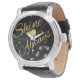 Uhr, Vintage Männeruhr mit schwarzem Lederarmband
