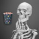 Tischdekoration aus Halloween-Party. Design mit lustigen Halloween-Figuren. Kürbisse, lustige Geister, schelhafte Kätzchen und Fledermäuse. Sehen Sie sich die gesamte Sammlung an. Ideal für Party im Herbst.