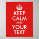 Change the text design on this classic vintage "Keep Calm and Carry On" poster design. White crown and block text. Create a parody poster for your wall. You can change the black background color.