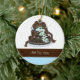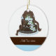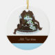 Passen Sie diese schöne Designer Schokolade Hochzeitskuchen Ornament. Köstliche, dunkle Schokolade mit Bögen und Blume in Blautönen.