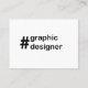 Grafikdesigner Business Card entworfen von Nisha Prabhu. Vollständig anpassbar. Personalisieren Sie Ihre Daten. Die Graphic Designer Business Card ist eine berufliche und visuell atemberaubende Darstellung Ihrer Gestaltungskompetenz. Diese Visitenkarte wurde mit viel Liebe zum Detail gestaltet und soll potenziellen Kunden und Mitarbeitern einen bleibenden Eindruck verließe. Die Vorderseite der Visitenkarte ist mit einem eleganten und modernen, personalisierten Typografie-Design in Schwarz und Weiß ausgestattet, das den ''#graphic designer'' in einer kühlen und auffälligen Art und Weise präsentiert. Die Rückseite der Visitenkarte bietet genügend Platz, um Ihre Kontaktdaten zu präsentieren. Die Grafik Designer Business Card ist ein leistungsstarkes Tool, mit dem Sie einen unvergesslichen ersten Eindruck machen können. Verpassen Sie diese Karte bei Netzwerkveranstaltungen, Kundenmeetings oder wann immer Sie gewollt haben, Ihre Professionalität und Kreativität als Grafikdesigner zu präsentieren.
