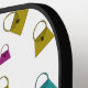 Ein Design für den modebewussten Pickleball-Spieler. Mini-Designer-Handtaschen sind modische Farben auf weißem Hintergrund auf der Vorderseite des Paddels und auf schwarzem Hintergrund auf der Rückseite des Paddels. Ändern Sie die Hintergrundfarbe nach Wunsch.