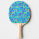 Designer Blau Retro Monogram Ping Pong Paddle. Retro-Muster auf beiden Seiten verfügbar oder für die Rückseite rot oder schwarz wählen.