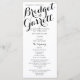 Hochzeitsprogramme für Rack-Karten mit schwarz-weißem Text verändern die Farbe des Textes, wie es gewünscht wird.