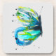 Illustration d'aquarelle en bleu et vert pour papillon blanc. Art original.