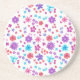 Un joli dessous de verre rond en grès, avec un motif de fleurs vives en violet, turquoise, rose et orange sur un arrière - plan blanc, d'un collage de papier peint à la main par Judy Adamson. Vous pouvez facilement changer la couleur de l'arrière - plan, si vous le souhaitez, en utilisant le bouton Modifier.