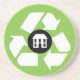Les flèches de recyclage entourent l'illustration d'un bâtiment blanc dans un cercle noir. L'Arrière - plan est vert.
