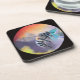 A colourful set of six cork backed coasters featuring a bee hovering near a flower. Design taken from an original pastel painting