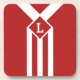 Un élégant motif géométrique présente des rayures blanches sur un arrière - plan rouge. Trois chevrons blancs et rouges alternent se terminent par un diamant rouge surligné de blanc. On dirait une médaille stylisée suspendue à un ruban. Le diamant contient un monogramme personnalisable. Trois bandes blanches s'étendent du côté opposé du diamant jusqu'au bord du dessin. Les tiers extérieurs du motif sont rouges. numériquement créé une image. Copyright © 2014 Claire E. Skinner. Tous droits réservés.