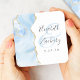 Cet élégant dessous de verre mariage moderne dispose d'un design d'agate d'aquarelle bleu bébé avec une parties scintillant en faux or. Customisez facilement le texte gris fusain sur un arrière - plan blanc, avec les noms du couple en calligraphie manuscrite sur une grande et pâle ampersande bleue.