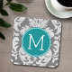 Dessous De Verre Carré Modèle gris chic et Damas Turquoise Monogramme per