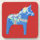 L'image de cette cascade de boisson Blue Dala Horse est celle d'un cheval en bois dessiné, sculpté et peint par Julia Morrill