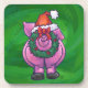 Dessous-de-verre Cochon de Fête à Santa Hat sur Vert