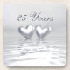 Pour tous vos besoins de 25e anniversaire. Une scène 3d couleur argent avec 2 coeurs argentés flottant sur l'eau. Le texte personnalisable dit "25 ans".
