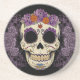 fleurs pourpres avec un crâne féminin sur des dessous de verre de grès