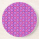 Un joli Dessous de verre en grès, avec un motif de coeurs et de fleurs dans les tons magenta, rose, violet et bleu.