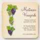 Une vigne avec quatre grappes de raisins à vin s'alignent le long du côté gauche de ce dessous de verre de liège. La vigne serpente derrière le raisin contre un arrière - plan parchemin. Un grand objet promotionnel ou un cadeau pour un bar à vin, une boutique de vin, un vignoble ou un vigneron. Disponible avec des produits correspondants.