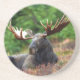 Dessous de verre d'orignal. Magnifique photo d'un orignal majestueux couché dans un champ de fleurs sauvages. Photo de Shivam Kumar.