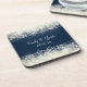 Un design élégant et abstrait avec de la dentelle crème et des perles faites de cercles et de bulles. L'arrière - plan est bleu foncé avec des carrés défraîchis sur le côté. Design joli et délicat. Personnalisez / customisez avec le nom de la mariée et des mariés et la date du mariage.