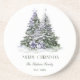 Cet élégant dessous de verre de Noël est orné de beaux arbres de Noël aux aquarelles violettes et vertes ornés de verres et entourés de cadeaux emballés. L'ornement inclut également le message MERRY CHRISTMAS dans une police élégante. Personnalisez l'ornement en ajoutant votre nom de famille et l'année.