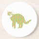 Un chat avec motif géométrique en bleu, vert, jaune, orange et rouge. Design original.