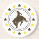 Ces dessous de verre de boissons comportent un cowboy de brun foncé et une image s'opposante de silhouette de cheval. L'image est entourée par un cadre des points noirs et des doubles lignes. L'image entière est alors encadrée en alternant assortissant les étoiles brunes et lumineuses d'or. les *This conçoivent des graphiques Factory.com de © d'image d'utilisations *