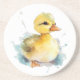Un dessous de verre en grès mignon avec une illustration d'aquarelle de canard bébé.