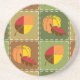 Quatre carrés sont décorés de feuille et de citrouille dans les tons rouges, oranges, jaunes et marrons de l'automne. La couture blanche apporte une touche décorative, donnant au motif répétitif l'aspect d'une courtepointe, créant une sensation de douceur pour l'automne.