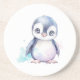 Un mignon dessous de verre en grès de pingouin de bébé aquarelle.
