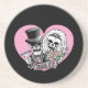 Les crânes de mariée et de mariée sont habillés dans leur meilleur mariage avec un texte JUST MARRIED.