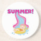 Une conception mignonne pour l'été, les caractéristiques une fille d'une chevelure blonde dans le maillot de bain et l'anneau descendant le texte de glissière d'eau et de roses indien et de bleu qui lit l'ÉTÉ ! T-shirts d'été, combinaisons, bavoirs, tasses, cartes, sacs, autocollants, souvenirs, coussins, et beaucoup plus.