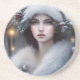 Le dessous de verre de vacances est orné d'une belle princesse en casquette à fourrure blanche et enveloppé de feuillage d'hiver dans un portrait de style vintage. Un joli portrait thématique de Noël créé avec un logiciel générateur d'IA