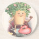 Antique postcard illustration from the 1900's, with a smiling face, rosy cheeks, humanized potted plant of four leaf clover shamrocks, surrounded by a red tampy heart and key, and a pretty golden yellow butterfly. Much good luck !