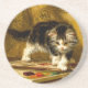 Dessous de verre de grès avec la peinture à l’huile de Henriëtte Ronner-Knip The Young Artist (1821-1909). Un chaton noir et blanc joue avec un set de peinture et deux brosses. Un cadeau adorable pour les amoureux de les chats et les amateurs de romantisme.