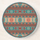 Dessous De Verre En Grès Motif Tribal Sud-Ouest Turquoise Terracotta