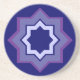 Ces dessous de verre comportent un motif abstrait de grouper huit étoiles dégrossies en couleurs de mauve, de pourpre et de blanc sur un arrière - plan bleu de minuit.