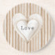 Dessous De Verre En Grès Romantic Cream Heart Brown Stripes Love