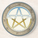 Voici une belle fin d'automne, dessous de verre de début d'hiver pour vos rituels et/ou vos autels de vacances. Il montre une roue de couleur sépia de l'année avec les huit Sabbats Wiccan : Mabon, Samhain, Yule, Imbolc, Ostara, Beltain, Litha et Lughnasah. Entre les mots sont de gracieux feuilles de curling. Le centre de la roue a un pentacle métallique.