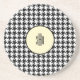 Design motif classique Houndstooth avec cadre jaune vintage et monogramme noir moderne. Ce dessous de verre élégant est fait de grès et mesure 4,25" de diamètre .25" d'épaisseur. Modifiez facilement les initiales du monogramme en utilisant le Modèle fourni. Dessous de verre a un support en liège fait pour garder vos tables rayées et sans humidité. Pour plus d'informations, reportez-vous à la section "À propos de ce produit" à côté.