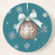 Dessous De Verre En Grès Teal Blue Snowflakes Christmas Coconut Bow