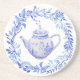 Dessous De Verre En Grès Théière Bleue et Blanche avec Couronne