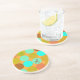 Dessous De Verre En Grès Turquoise Bleu Vert & Cercles Orange Monogramme