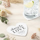 Rendez votre heure de cocktail de mariage encore plus mémorable avec ces dessous de verre en papier en forme de cœur doux et romantique, avec la mention "à l'amour" et vos noms et date de mariage en dessous. Le design de typographie chic noir et blanc apporte une touche élégante mais légère à votre réception de mariage.