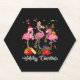 Dessous-de-verre En Papier Merry Christmas Three Flamingo With Santa Hat