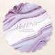 Cet ensemble de design mariage, avec son motif abstrait d'ondulations fluides et de veines de prune scintillante, rappelle les formations rocheuses et les gemmes étincelantes. La palette de couleurs frappante dans les teintes allant du lilas et de la lavande à la perwinkle molle ajoute à l'attrait. Le dessous de verre de coordination sur papier présenté ici a un arrière - plan abstrait tenant le texte facultatif de "Cheers to the happy couple" avec vos noms et la date du mariage. Recherchez ID903 pour voir d'autres choix de couleurs et coordonner des pièces pour cette collection de mariages unique.