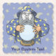 Vieux sorcier avec cape bleue et boule de cristal magique. Utilisez la photo du visage pour customiser. Texte personnalisé.