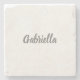 Dessous-de-verre En Pierre Calligraphie Elégant Gris Blanc Plaine Nom simple