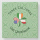 Ce shamrock célèbre les fêtes de trois pays : l'Italie, l'Irlande (comme la Saint Patrick), et les USA (comme la fête de l'Indépendance ou le 4 juillet). Un drapeau différent est présent dans chaque feuille. Vous y verrez le drapeau italien, le drapeau irlandais et le drapeau des Etats-Unis d'Amérique. Au-dessus du shamrock, on lit TROIS CULTURES. Ci-dessous, on peut lire UN NOM. Ajoutez votre nom au bon endroit pour personnaliser. Pour faire un cadeau customisé, ajoutez le nom de quelqu'un d'autre. Les mots apparaissent dans le vert foncé, le style celtique, les lettres circulaires. Le tout est posé sur un arrière - plan de carrés vert clair.