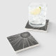 Dessous-de-verre En Pierre Elégant Silver Sun Moon Mandala Black Design