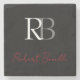 Dessous-de-verre En Pierre Noir moderne Noir Monogramme Initiales Nom